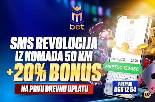 MBET PROMOCIJE Uzmi 20% na prvu dnevnu uplatu putem SMS-a! Iz jedne poruke na nalog uplati 50 KM! Dopuni nalog Sbonom, čeka te 30 spinova svaki dan! Runda kreće odmah! My Lucky6 Instant zauvijek mijenja navike igrača koji zaokružuju brojeve! Mbet je na EP media terminalima: Dopuni nalog, čeka te tiket ili besplatno spinovanje Dopuni nalog xBonom i Klikerom uz 0% provizije! Uz opciju CASHOUT ti si gazda svog tiketa! Bogovska dobrodošlica: Uzmi 3×5 minuta spinovanja na Gates of Olympus! Samo na Mbet korneru: Uzmi bonus na uplatu od 30% i 20 spinova Duplo profitiraj: Uzmi bonus 30% svaki dan na Mbet korneru, te zgrabi dodatnih 5 KM! Dopuni nalog uz 0% posto provizije putem svih kanala uplate! Svaki tiket kod nas je DOBITAN! Pao si jedan par? Kod nas je i stativa pogodak! Isplata dobitka u trenu: Uz Mbet cash code isplati se 24/7 Cash to go – uzmi svoj novac ODMAH KAZINO TURNIRI Zavrti voćkice, dijelimo 3.000 spinova po 1 KM Pragmatic vrući sati: Nagrade padaju svakog petka naveče! Srijedom zaokružuj brojeve i bori se za 500 KM freebeta! Subotom u februaru: Igraj, zabavi se i osvoji besplatne minute! OSTALE PROMOCIJE Preuzmi Mbet aplikaciju za ugođaj bez granica Dajemo ti do 350% bonusa na broj parova Pojačaj dobitak moćnom bonus kvotom Uz MOVE aplikaciju ne propusti ni sekund sportskog sadržaja BUDI U TOKU! Zaprati nas na društvenim mrežama Zabava, ne zarada: Mbet u službi odgovornog klađenja PODRŠKA 08 - 22h Telefon: 066 666 222 E-mail: [email protected] O nama INFORMACIJE Opšta pravila Odgovorno klađenje Uslovi korištenja Politika privatnosti Politika kolačića Politička aktivnost Opis igara