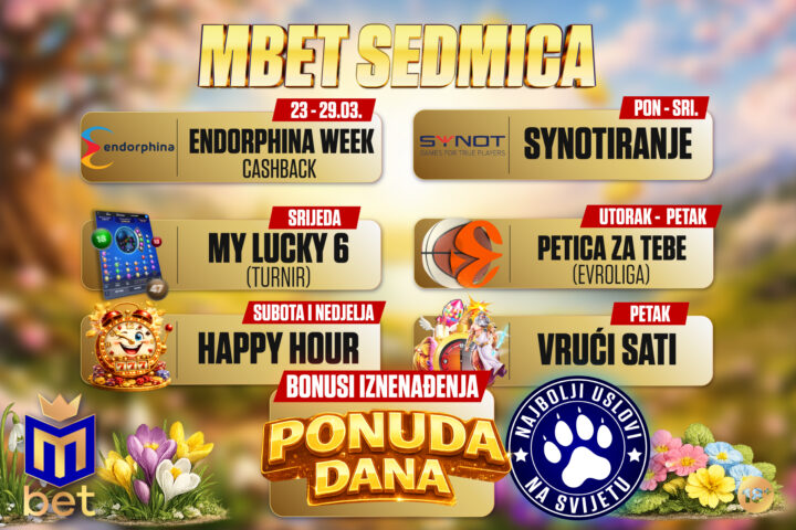 MBET PROMOCIJE „Zmajevi“ na tiket, freebet na nalog! Kraljevski: Odigraj 3 granice na poene košarkaša, odmah dobijaš 5 KM freebeta! Provajder sedmice: Igraj Endorphinu, vraćamo 20% CASHBACKA Mbet sedmica: Uskoči u proljećni talas darivanja Ne čekaj ništa! Odaberi srećne brojeve na My Lucky6 Instant, runda kreće odmah! Promocija na BP Nešković: Uplati depozit na terminalu, Mbet časti kafom! Buđenje ranog proljeća: Mart pršti od promocija i nagrada na mbet.ba! Samo na Mbet korneru: Uzmi bonus na uplatu od 30% i 20 spinova Dopuni nalog Sbonom, čeka te 30 spinova svaki dan! Mbet je na EP media terminalima: Dopuni nalog, čeka te tiket ili besplatno spinovanje Dopuni nalog xBonom i Klikerom uz 0% provizije! Uz opciju CASHOUT ti si gazda svog tiketa! Bogovska dobrodošlica: Uzmi 3×5 minuta spinovanja na Gates of Olympus! Duplo profitiraj: Uzmi bonus 30% svaki dan na Mbet korneru, te zgrabi dodatnih 5 KM! Dopuni nalog uz 0% posto provizije putem svih kanala uplate! Svaki tiket kod nas je DOBITAN! Pao si jedan par? Kod nas je i stativa pogodak! Isplata dobitka u trenu: Uz Mbet cash code isplati se 24/7 Cash to go – uzmi svoj novac ODMAH KAZINO TURNIRI Uskoči u Amusnet Mega turnir, prvo mjesto nosi 20.000 KM! Pragmatic vrući sati: Nagrade padaju svakog petka naveče! Srijedom zaokružuj brojeve i bori se za 500 KM freebeta! Synotiraj početkom sedmice! U igri je 2.000 spinova! OSTALE PROMOCIJE Preuzmi Mbet aplikaciju za ugođaj bez granica Dajemo ti do 350% bonusa na broj parova Pojačaj dobitak moćnom bonus kvotom Uz MOVE aplikaciju ne propusti ni sekund sportskog sadržaja BUDI U TOKU! Zaprati nas na društvenim mrežama Zabava, ne zarada: Mbet u službi odgovornog klađenja PODRŠKA 08 - 22h Telefon: 066 666 222 E-mail: [email protected] O nama INFORMACIJE Opšta pravila Odgovorno klađenje Uslovi korištenja Politika privatnosti Politika kolačića Politička aktivnost Opis igara