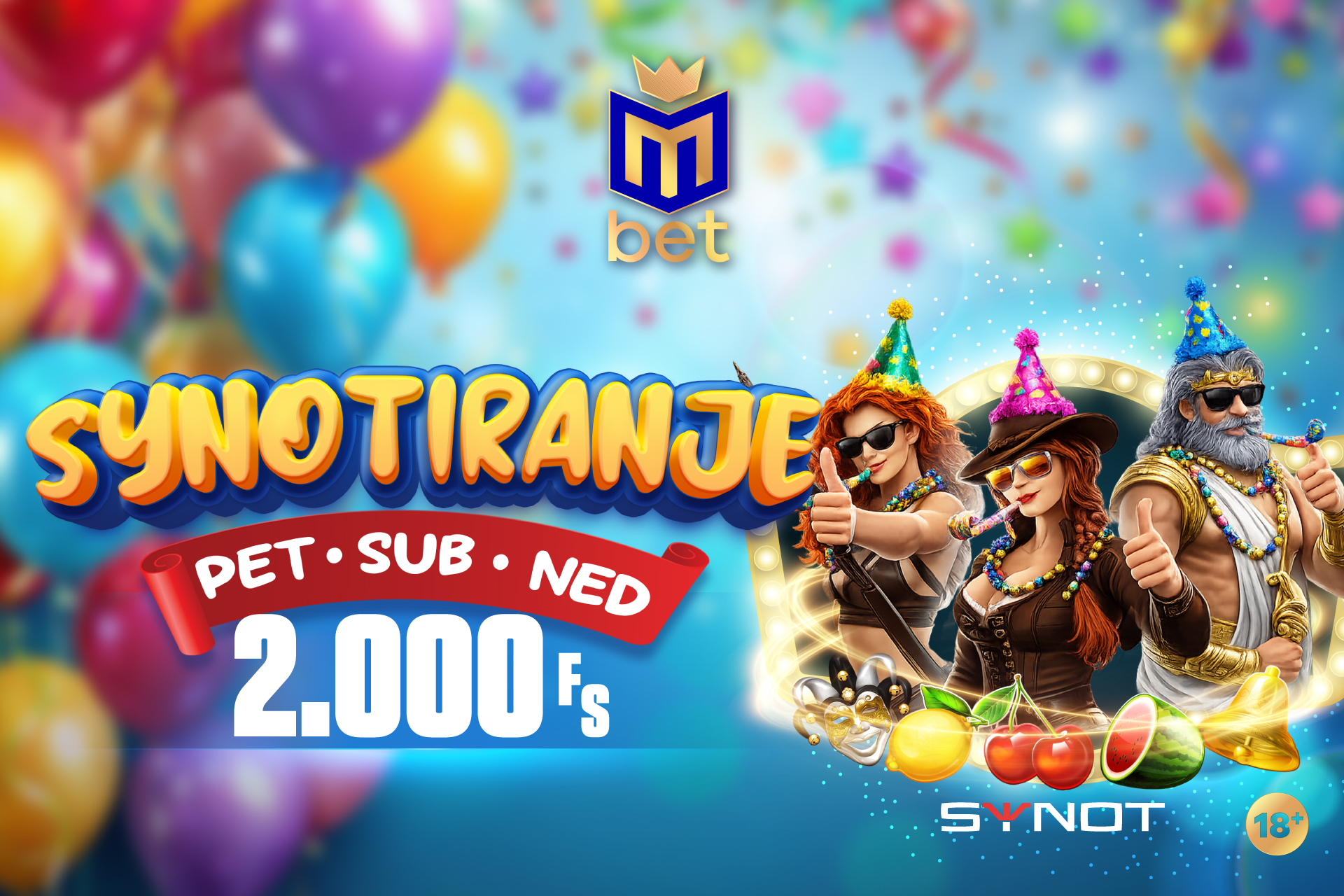 Petak, subota i nedjelja u aprilu rezervisani su za Synot provajdera i mini turnir koji nosi 2.000 spinova! Zavrti, budi među 30 igrača i uživaj u besplatnim spinovima.